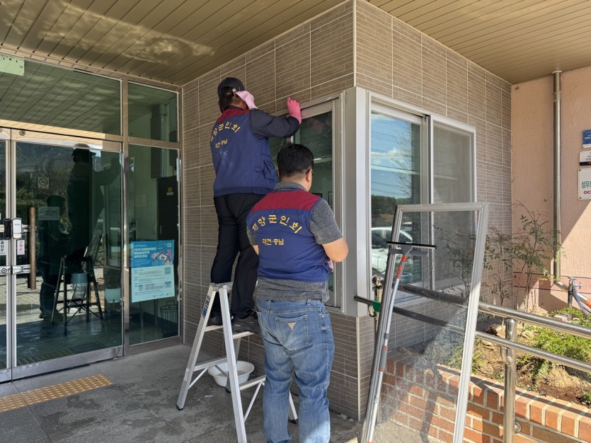 재향군인회 남성 봉사자분들께서 관리동 유리창 물청소를 정성껏 진행해 주셨습니다.