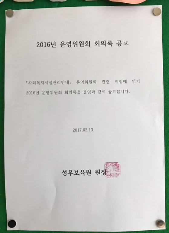 19-03-28 11:35 2016년 운영위원회 회의록 공고 페이지 정보 작성자 성우보육원 댓글 0건 조회 5,721회 본문 본 시설에서는 「사회복지사업 관리안내」지침에 의거, 2016년도 시설운영위원회 회의록을 원내 게시판에 다음과 같이 공지하였음을 알려드립니다. 목록 댓글목록 댓글목록 등록된 댓글이 없습니다.